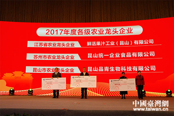 昆山市政府為2017年度各級農(nóng)業(yè)龍頭企業(yè)兌現(xiàn)獎(jiǎng)勵(lì)資金。(中國臺灣網(wǎng) 汪明珠 攝)