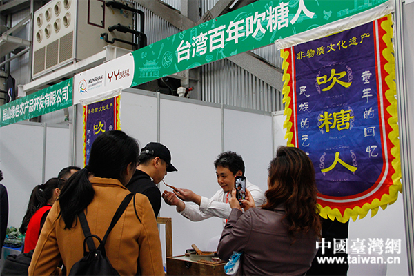 臺(tái)灣吹糖人邀請(qǐng)觀眾共同完成糖人作品。(中國(guó)臺(tái)灣網(wǎng) 汪明珠 攝)