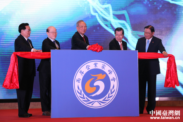 曾培炎、蕭萬長、江丙坤、王國生、劉結(jié)一共同啟動論壇開幕裝置。(中國臺灣網(wǎng) 張亞靜 攝)