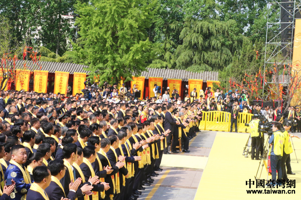 中國(guó)臺(tái)灣網(wǎng)4月18日鄭州訊 (記者 張亞靜)“黃帝故里惠風(fēng)和暢,炎黃子孫共拜始祖! 三月三拜軒轅,是中華民族的傳統(tǒng),肇始春秋,綿延至今。4月18日上午,戊戌年黃帝故里拜祖大典在河南新鄭黃帝故里景區(qū)舉行,來自30多個(gè)國(guó)家和地區(qū)的嘉賓近八千人齊聚中原大地,禮拜人文始祖軒轅黃帝,共建精神家園。