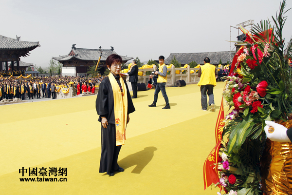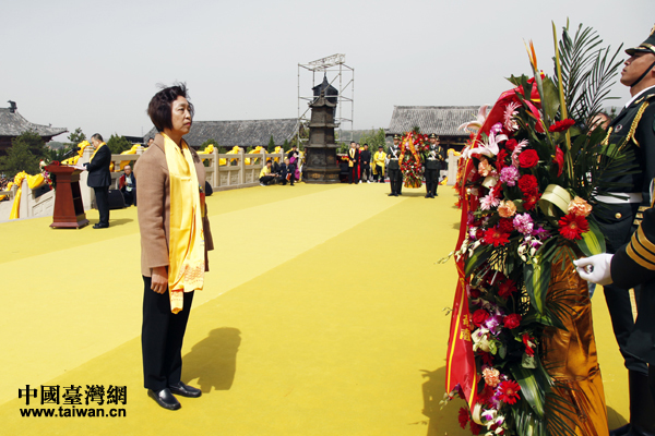 中國國民黨前主席洪秀柱敬獻花籃(中國臺灣網(wǎng)發(fā) 圖片來源:山西省高平市新聞中心)