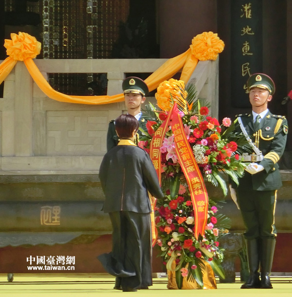 中國國民黨前主席洪秀柱敬獻花籃(中國臺灣網(wǎng) 王文英 攝)