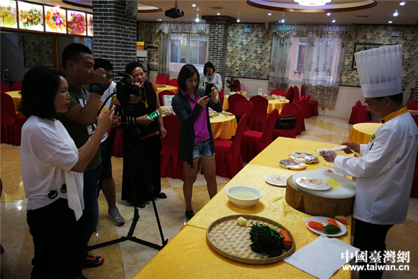攝制組拍攝橫縣魚(yú)生制作過(guò)程。(圖片來(lái)源:南寧市臺(tái)辦)