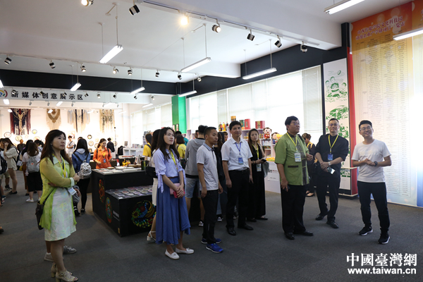 參訪交流團聽取《一人一品》作品展講解。(中國臺灣網(wǎng) 袁楚 攝)