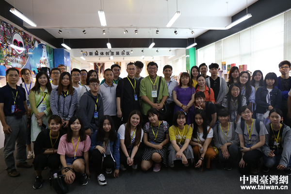山傳文化科技園內(nèi)合影留念。(中國臺灣網(wǎng) 袁楚 攝)