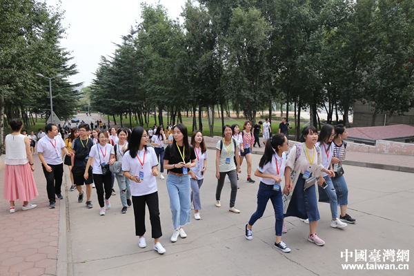 臺灣大學(xué)生在本校學(xué)生陪同下參觀校園。(中國臺灣網(wǎng) 袁楚 攝)