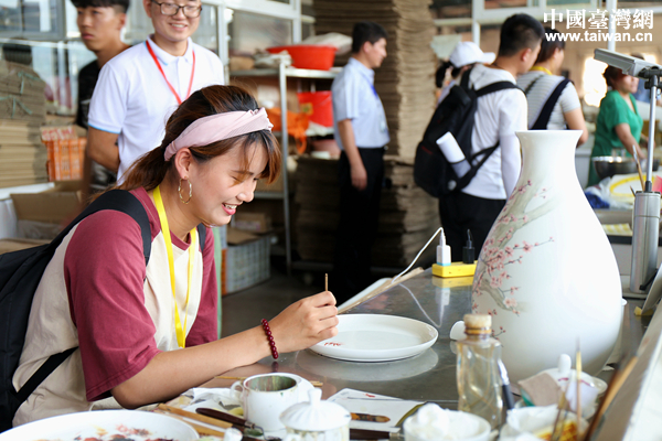 臺灣青年在參訪過程中體驗瓷器彩繪。(中國臺灣網(wǎng) 袁楚 攝)