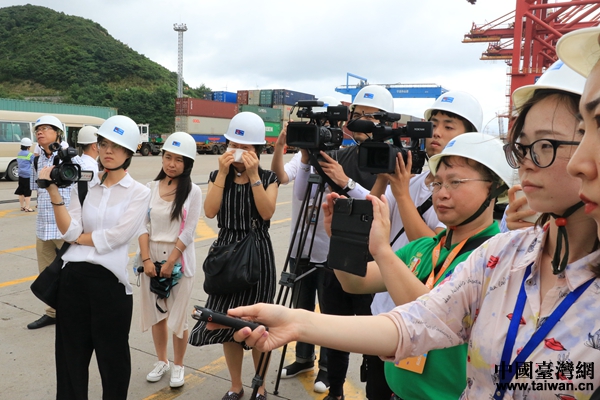兩岸記者參觀寧波舟山港穿山港區(qū)。(中國(guó)臺(tái)灣網(wǎng) 李奕均 攝)