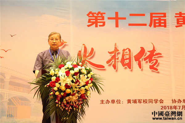 開(kāi)幕式上,臺(tái)灣中國(guó)統(tǒng)一聯(lián)盟主席戚嘉林做主題發(fā)言。(圖片來(lái)源:黃埔軍校同學(xué)會(huì))