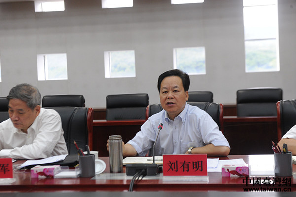 崇左市委書記劉有明發(fā)言。(圖片來源:廣西臺辦)
