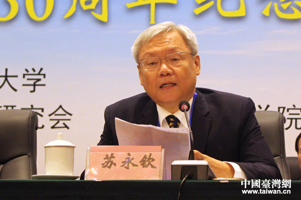 臺(tái)灣法曹協(xié)會(huì)理事長(zhǎng)蘇永欽在開(kāi)幕式上致辭。(中國(guó)臺(tái)灣網(wǎng) 張潔 攝)