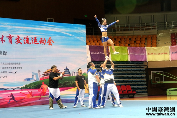 中國(guó)臺(tái)灣網(wǎng)7月20日北京訊 (記者 尹賽楠)激情夏日,是燃燒的季節(jié)。7月20日上午,海峽兩岸(北京)體育交流運(yùn)動(dòng)會(huì)啦啦操比賽在北京理工大學(xué)拉開(kāi)帷幕。來(lái)自北京體育大學(xué)、北京工商大學(xué)、首都體育學(xué)院、中華女子學(xué)院、臺(tái)灣體育大學(xué)、世新大學(xué)、實(shí)踐大學(xué)在內(nèi)的7支兩岸啦啦操代表隊(duì)共聚于此,同場(chǎng)競(jìng)技,譜寫(xiě)出一曲力量與美相結(jié)合的體育盛會(huì)。