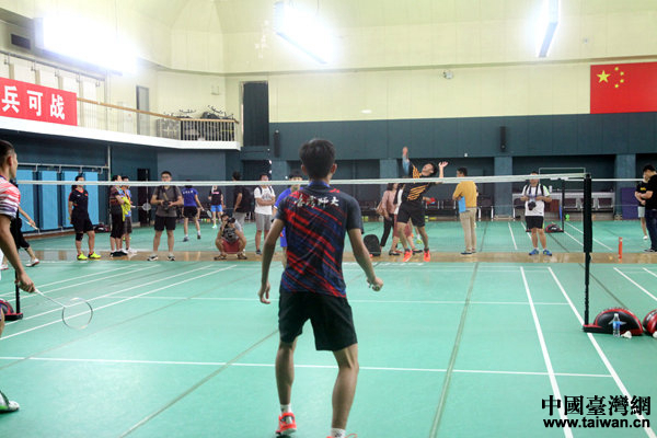 臺(tái)灣運(yùn)動(dòng)員與“國羽”隊(duì)員進(jìn)行切磋。(中國臺(tái)灣網(wǎng) 李奕均 攝)