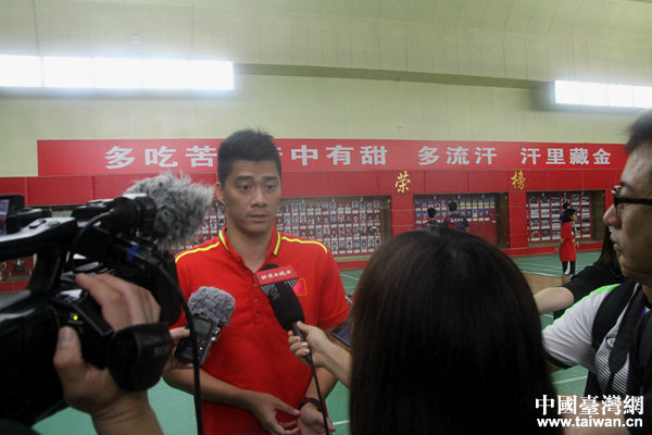 中國乒乓球女隊(duì)前主教練陸元盛接受記者采訪。(中國臺(tái)灣網(wǎng) 李奕均 攝)