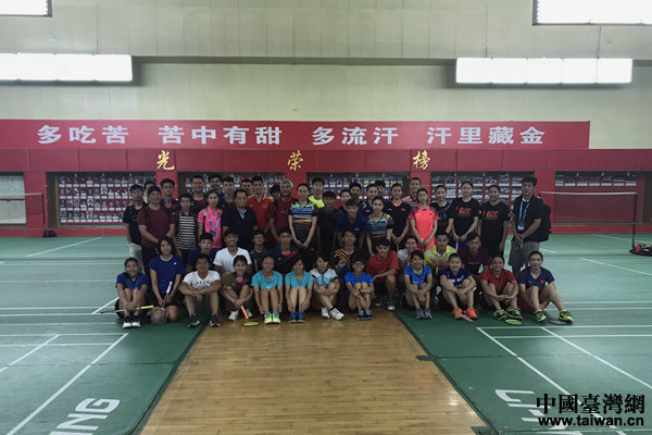 臺(tái)灣運(yùn)動(dòng)員與“國羽”隊(duì)員切磋。(中國臺(tái)灣網(wǎng) 李奕均 攝)