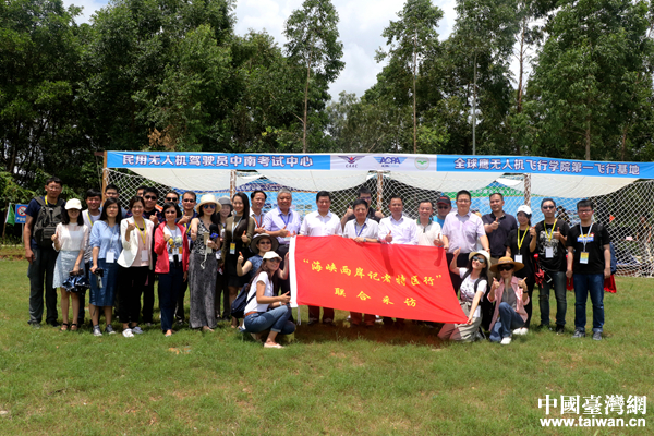 “海峽兩岸記者特區(qū)行”聯(lián)合采訪團(tuán)參訪深圳市龍崗區(qū)全球鷹無人機飛行基地。(中國臺灣網(wǎng) 尹賽楠 攝)