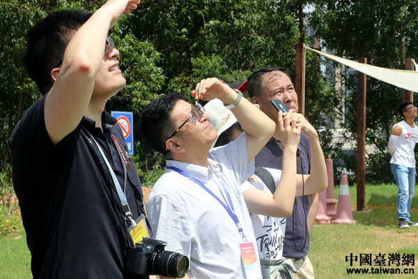 國務(wù)院臺灣事務(wù)辦公室新聞局局長馬曉光攜聯(lián)合采訪團(tuán)觀看無人機表演。(中國臺灣網(wǎng) 尹賽楠 攝)