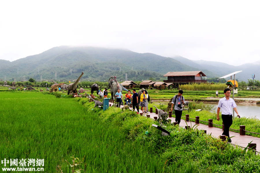 中國臺灣網(wǎng)7月28日三亞訊 (記者 尹賽楠 雍紫薇)“一望無際的稻田邊,竟然在上演一出現(xiàn)實(shí)版侏羅紀(jì)公園!”28日下午,“海峽兩岸記者特區(qū)行”聯(lián)合采訪團(tuán)來到三亞海棠灣水稻國家公園,看著稻田里那些活靈活現(xiàn)的恐龍,記者們紛紛拿起手中的相機(jī),記錄下這震撼人心的瞬間。