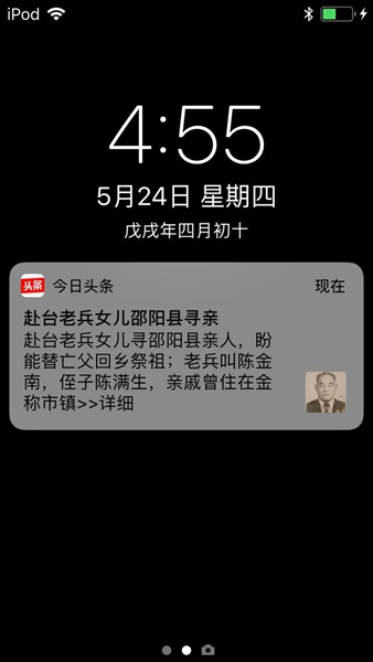 為了幫助陳湘華實現(xiàn)她的尋親心愿,今日頭條兩岸尋親項目在2018年5月24日發(fā)布《憑塵封27年的家書,赴臺老兵女兒湖南尋親,盼能替亡父回鄉(xiāng)祭祖》消息,并將該信息彈窗推薦給湖南邵陽縣的部分今日頭條用戶,與央視《等著我》節(jié)目合力尋找老兵陳金南的家鄉(xiāng)親人。