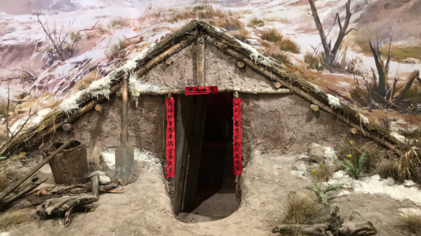 塞罕壩展覽館內(nèi)陳列的老一輩塞罕壩人居住的房屋模型。(中國臺灣網(wǎng) 趙苗青 攝)