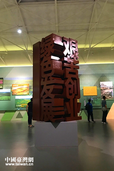 “牢記使命 艱苦創(chuàng)業(yè) 綠色發(fā)展”展覽館內(nèi)展示的賽罕壩精神標(biāo)語。(中國臺灣網(wǎng) 趙苗青 攝)