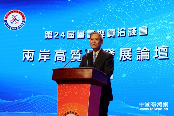海峽兩岸關(guān)系協(xié)會會長張志軍在第24屆魯臺經(jīng)貿(mào)洽談會開幕式上致辭。(中國臺灣網(wǎng) 趙苗青 攝)