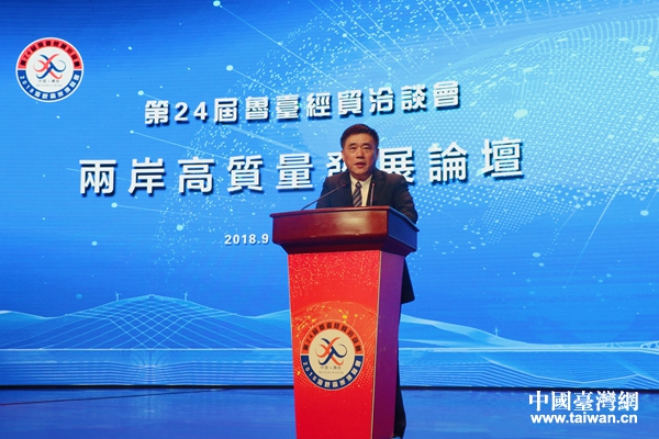 山東省副省長任愛榮在第24屆魯臺經(jīng)貿(mào)洽談會開幕式上致辭。(中國臺灣網(wǎng) 趙苗青 攝)