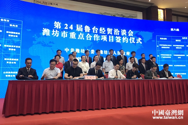 第24屆魯臺經貿洽談會濰坊市重點合作項目簽約儀式現場。(中國臺灣網 趙苗青 攝)