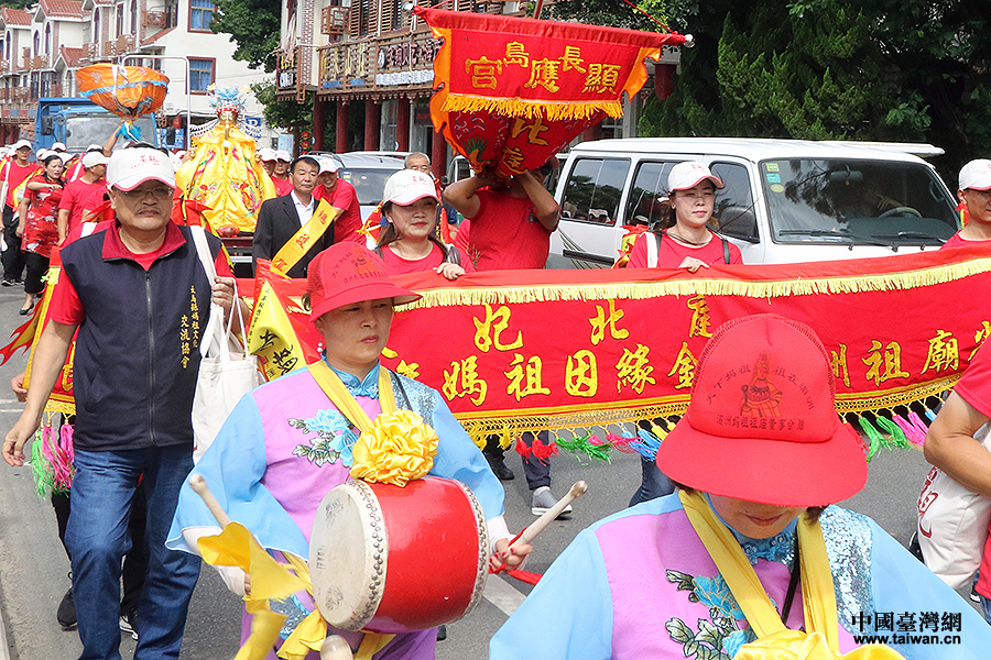 長(zhǎng)島顯應(yīng)宮媽祖金身在湄洲島進(jìn)行踩街儀式。(中國(guó)臺(tái)灣網(wǎng) 何建峰 攝)