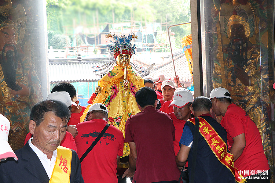 長(zhǎng)島顯應(yīng)宮媽祖金身進(jìn)入湄洲島媽祖祖廟。(中國(guó)臺(tái)灣網(wǎng) 何建峰 攝)