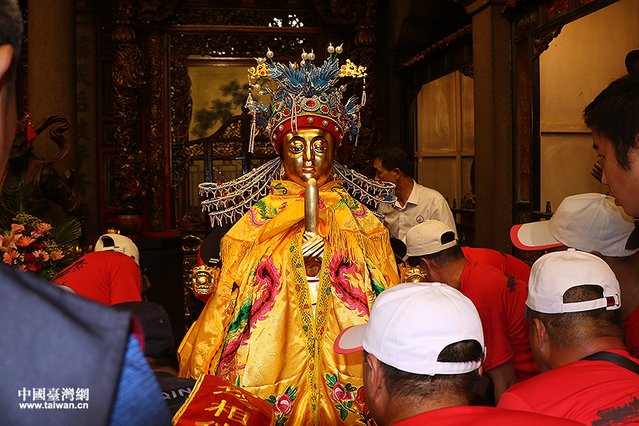 長(zhǎng)島顯應(yīng)宮媽祖金身駐蹕在湄洲媽祖祖廟天后宮寢殿。(中國(guó)臺(tái)灣網(wǎng) 何建峰 攝)