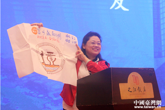 優(yōu)秀學(xué)員北京同仁堂太豐(臺(tái)灣)股份有限公司管嵐展示在培訓(xùn)班學(xué)習(xí)時(shí)大家的口號(hào)。(中國(guó)臺(tái)灣網(wǎng) 王怡然 攝)