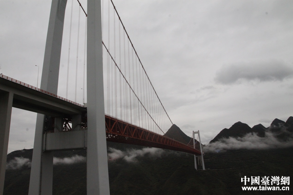 中國(guó)臺(tái)灣網(wǎng)9月27日安順訊(記者 李航)9月26日,貴州“橋”之旅兩岸媒體團(tuán)來到位于貴州省安順市的壩陵河大橋,一睹這座世界級(jí)橋梁的容貌,深入了解以壩陵河大橋?yàn)榇淼馁F州橋梁科技和交通發(fā)展。