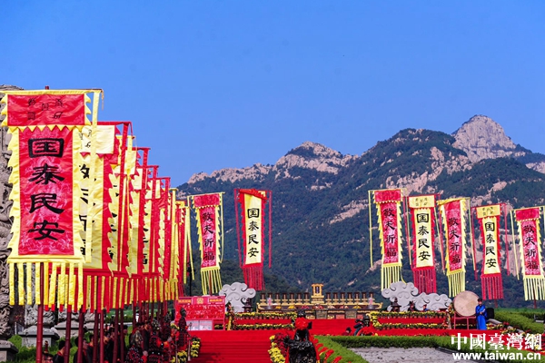 中國臺灣網(wǎng)10月13日泰安訊 (記者 雍紫薇)10月13日,“國泰民安”2018海峽兩岸暨全球華人敬天祈;顒釉谏綎|泰安舉行。海峽兩岸各領(lǐng)域?qū)<覍W(xué)者、海外留學(xué)生代表、媒體界朋友和各界傳統(tǒng)文化愛好者共計900余人參與了本次活動。