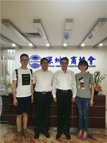 記者采訪深圳臺商協(xié)會會長陳忠和(右二)、秘書長盧政群(左二)