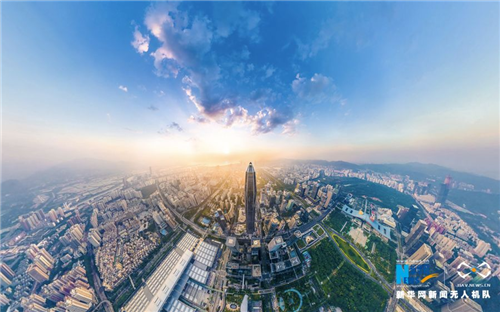 航拍高聳入云的平安金融中心,它與繁華的深圳福田中心區(qū)相得益彰。(新華網(wǎng) 劉東林 攝)
