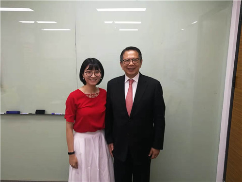 記者與接受采訪的北京臺協(xié)會長章啟正合影