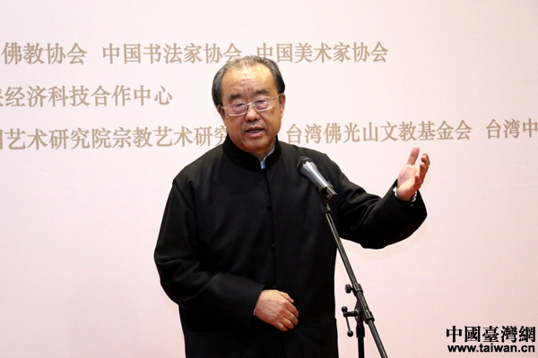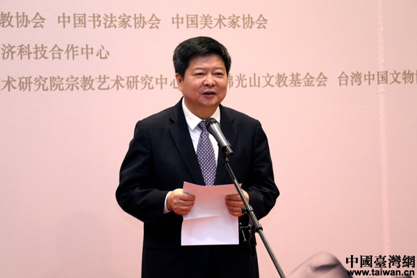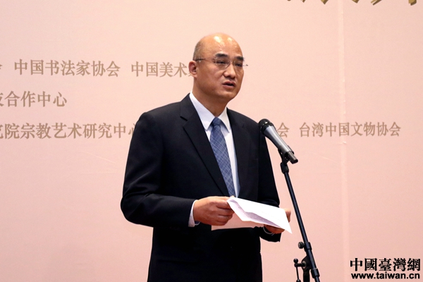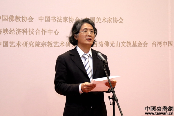中國書法家協(xié)會分黨組副書記兼秘書長鄭曉華出席開幕式并致辭。(中國臺灣網(wǎng) 尹賽楠 攝)