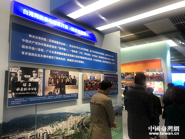 習(xí)近平總書記曾說(shuō)過(guò):“民族復(fù)興的路上,臺(tái)灣同胞不應(yīng)該缺席,也一定不會(huì)缺席”。在大陸改革開放40年的歷史進(jìn)程中,廣大臺(tái)灣同胞是重要的參與者和貢獻(xiàn)者。展區(qū)特別開辟出一片區(qū)域,展示和記錄廣大臺(tái)灣同胞積極投身大陸建設(shè)和社會(huì)發(fā)展,以及兩岸開啟交流交往30年來(lái)的諸多珍貴歷史時(shí)刻。
