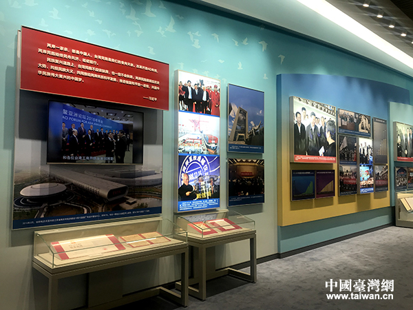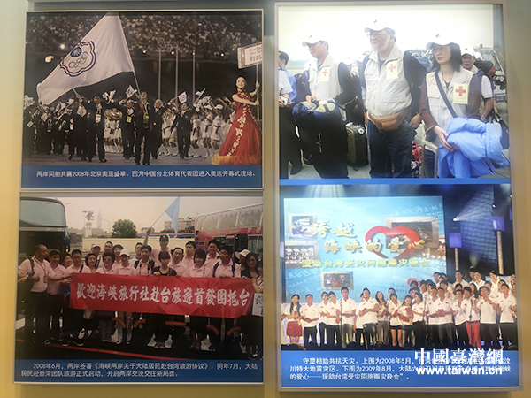 展區(qū)展出的記錄兩岸交流交往重要時(shí)刻的圖片。(中國(guó)臺(tái)灣網(wǎng) 普燕 攝)