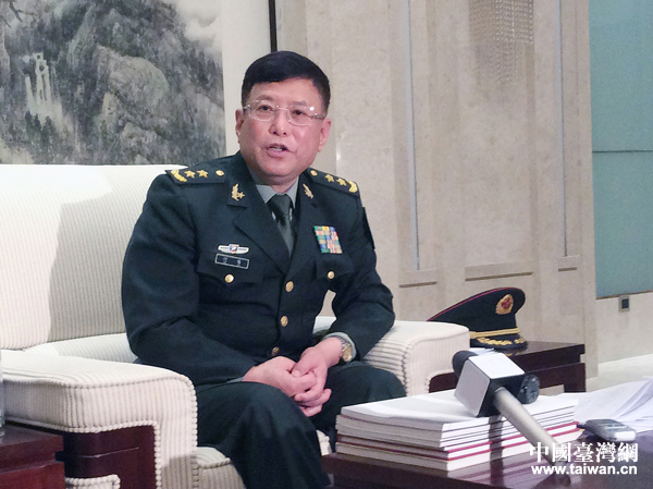 何雷中將接受參加兩岸網(wǎng)絡(luò)新媒體大陸行活動記者的聯(lián)合采訪。(中國臺灣網(wǎng) 王思羽 攝)