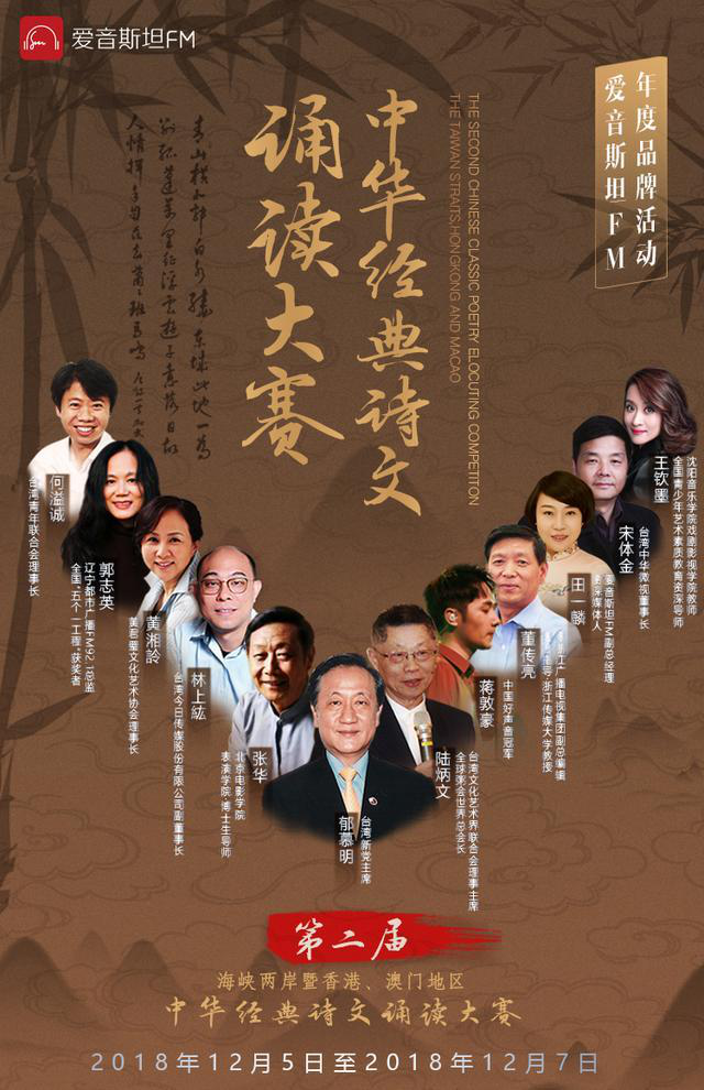 本屆大賽由國務(wù)院臺(tái)灣事務(wù)辦公室和中國國際文化傳播中心共同指導(dǎo),愛音斯坦FM和中國華藝音像實(shí)業(yè)有限公司共同主辦,是海峽兩岸及香港、澳門地區(qū)百家媒體與知名傳播機(jī)構(gòu)共同參與的本年度規(guī)模最大、影響力最強(qiáng)的誦讀賽事。