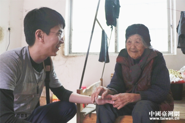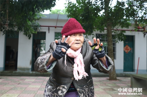 村里104歲高齡的梁秀珍老人拉起記者的手交談。(中國臺灣網(wǎng) 李寧 攝)