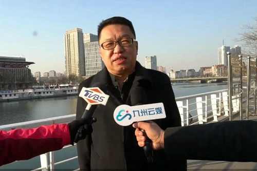 電視專(zhuān)題片《話(huà)說(shuō)九州》出品人杜忠齊接受采訪。(圖片來(lái)源:九州云媒)