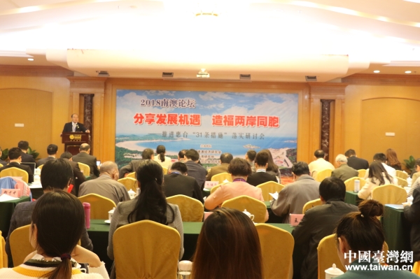 論壇現(xiàn)場,兩岸嘉賓圍繞“‘惠臺31項措施’意義重大影響深遠”、“‘九合一’選舉后深化兩岸經濟融合發(fā)展的路徑選擇”、“新形勢下兩岸經濟融合發(fā)展的推進策略探討”、“兩岸融合發(fā)展的意義、內涵與路徑”、“臺灣同胞與大陸同胞‘同等待遇’的法證基礎”等主題進行了深入的交流與探討。