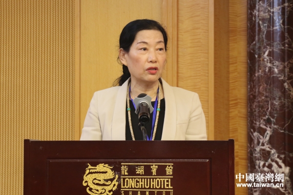 汕頭市人大常委會副主任、汕頭市臺港澳經濟研究會會長、汕頭大學粵臺企業(yè)合作研究院院長徐宗玲致辭。(中國臺灣網 李寧 攝)