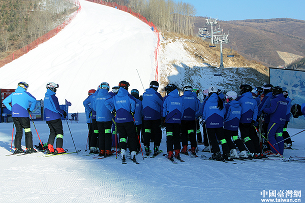 等待訓(xùn)練的滑雪學(xué)校學(xué)員。(中國(guó)臺(tái)灣網(wǎng) 賈若瀾 攝)