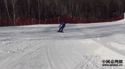 云頂滑雪場(chǎng)教練隊(duì)隊(duì)長(zhǎng)盧永帥為記者展示滑雪技巧。(中國(guó)臺(tái)灣網(wǎng) 賈若瀾 攝)