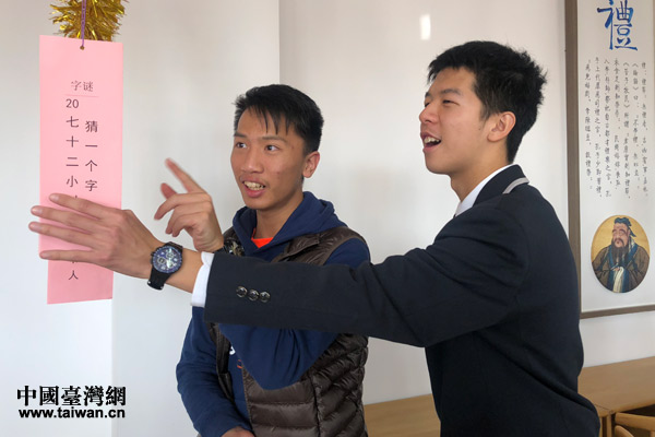 兩岸學(xué)生共同猜字謎。(中國臺灣網(wǎng) 楊旋 攝)