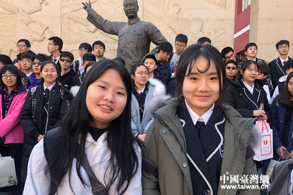 已經(jīng)來過大陸10多次的臺灣女高中生李筱嫻(左)和她的大陸小伙伴。(中國臺灣網(wǎng) 楊旋 攝)
